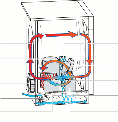 Condenser dryers remove moisture by condensing steam into water, which is collected in a tank or drained away if plumbed in (certain models only).